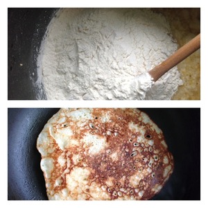 Всыпать муку и миксером взбить тесто буквально пару секунд. Оставить тесто в теплом месте на 30 минут. В это время тесто не трогать, не болтать, не мешать. Через 30 минут, разогреть сковороду, смазать силиконовой кистью сковороду растительным маслом. Тесто быстро перемешать, не взбивать венчиком. И жарить блины с двух сторон. Сковороду лучше использовать небольшого диаметра.