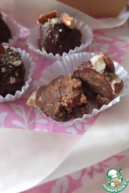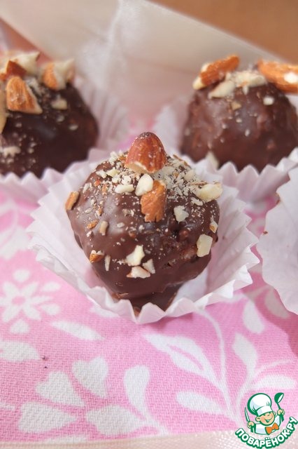 Верх конфет посыпаем орешками или кокосовой стружкой.