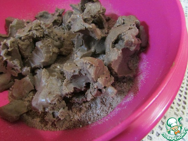 Соединить печенье, сахарную пудру и мягкое сливочное масло (у меня шоколадное). Все хорошо перемешать.
