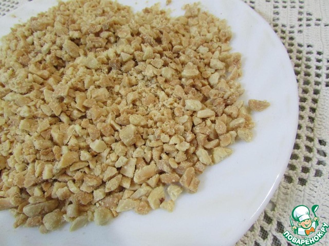 Тем временем подготовить начинку. Арахис смолоть в мелкую крошку.
