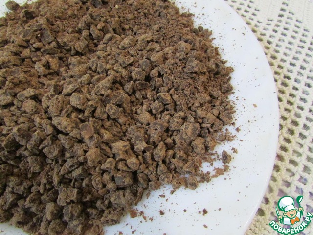 С помощью процессора печенье (у меня шоколадное) измельчить в крошку.