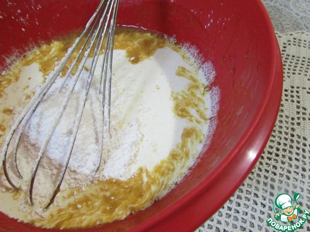 В миске соединить яйца, сгущенку и сахарную пудру.