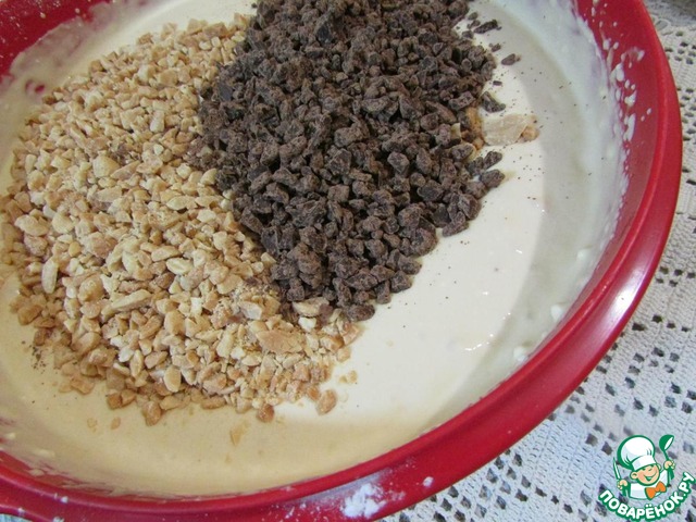 И в последнюю очередь добавить арахис и шоколад. Хорошо перемешать.