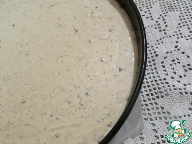 Вылить подготовленную массу на охлажденную основу и отправить в разогретую духовку (175°С). Выпекать 20 минут. Затем температуру убавить до 160°С и выпекать еще 35 — 40 минут. Духовку выключить, приоткрыть дверцу и дать постепенно остыть чизкейку (в духовке). Теплый чизкейк извлечь из духовки и остудить до комнатной температуры.