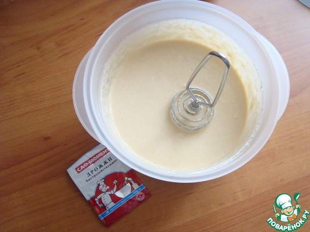 Посолила щепоткой соли, ещё раз размешала и опять поставила на 15 минут в тёплое место.