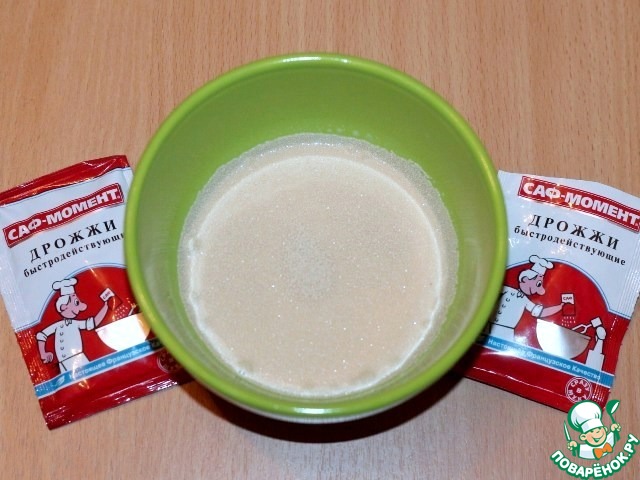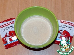 • 1. Приготовим опару. Дрожжи смешать с небольшим количеством воды или молока и оставить на 20 минут в теплом месте.