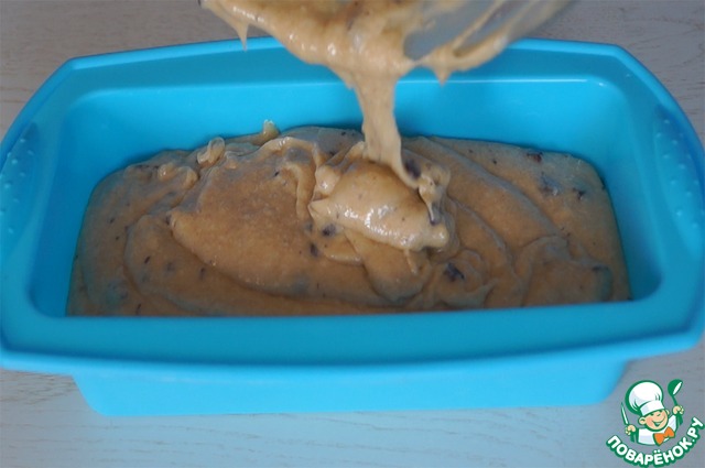 Всыпать кусочки шоколада, перемешиваем и выливаем тесто в форму, смазанную сливочным маслом.