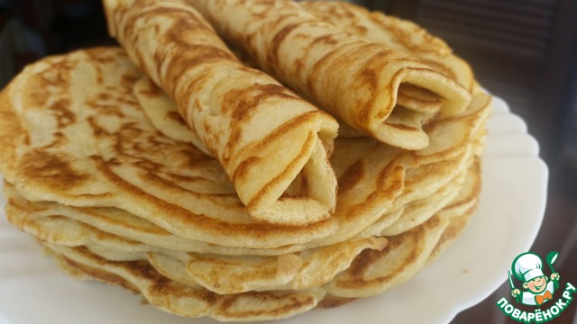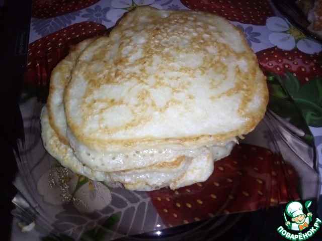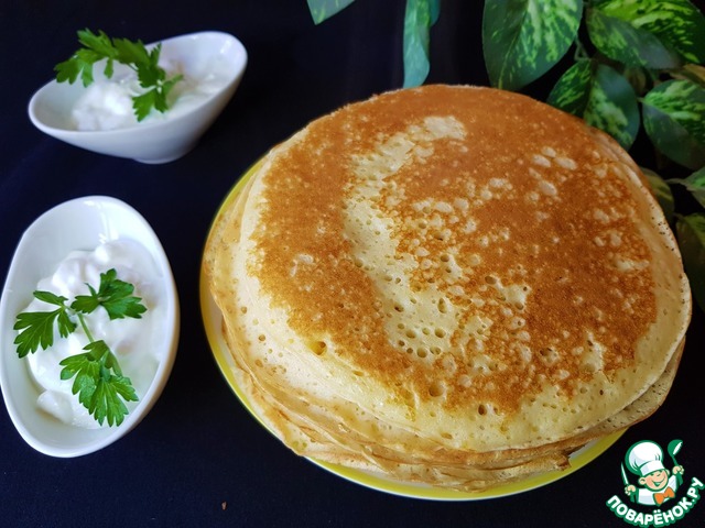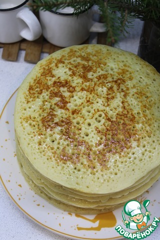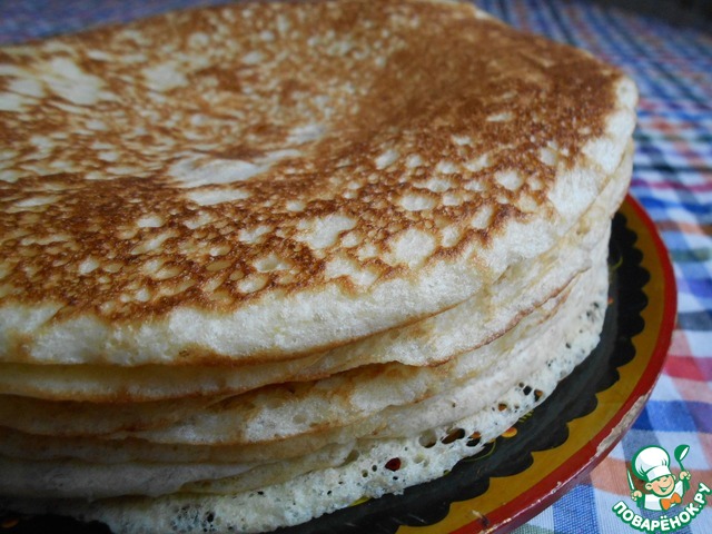 Блины пористые, пушистые, хорошо отстают от тефлоновой сковороды для блинов и без масла.