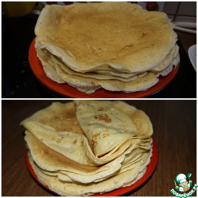 Сковороду смазывайте маслом перед каждым блинчиком. Наливайте тесто на раскаленную сковородку.