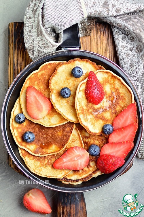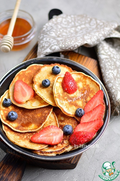 Подавать с ягодами, сметаной, вареньем или медом!