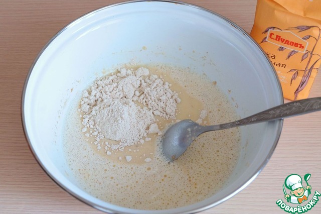 Добавить 2 ст ложки овсяной муки. Смесь размешать.
