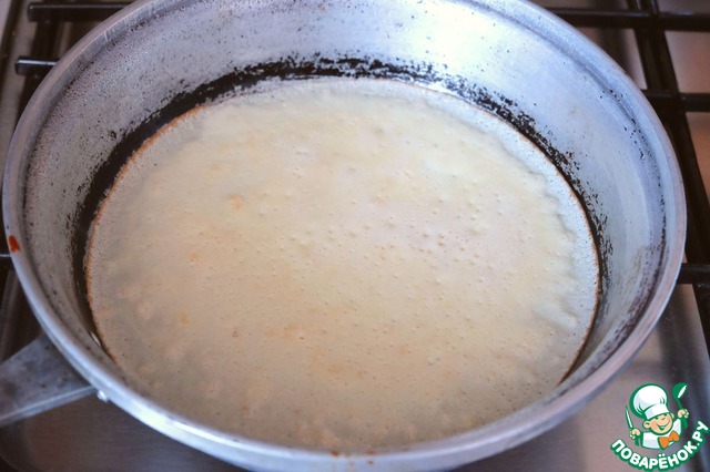 Блины выпекать на среднем огне. Вначале одну сторону.