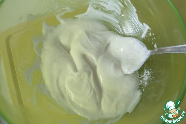 Для начинки взбить сметану с сахаром и убрать в холодильник.