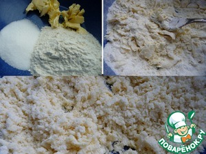 Для штрейзеля перетереть муку с маслом и сахаром в крошку. Мне удобнее это делать вилкой.