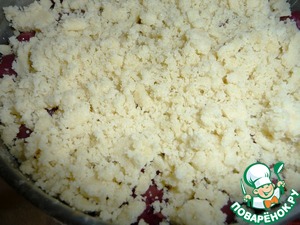 Вишню сверху посыпать штрейзельной крошкой.