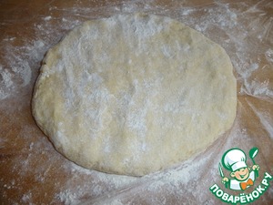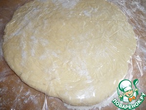Тесто выложить на пищевую пленку, припыленную мукой.