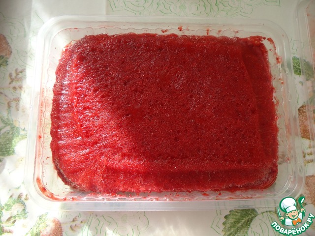 Клубнику я заморозила в сезон, измельчила вместе с сахаром в блендере, разлила по контейнерам, хранила в морозильной камере.
