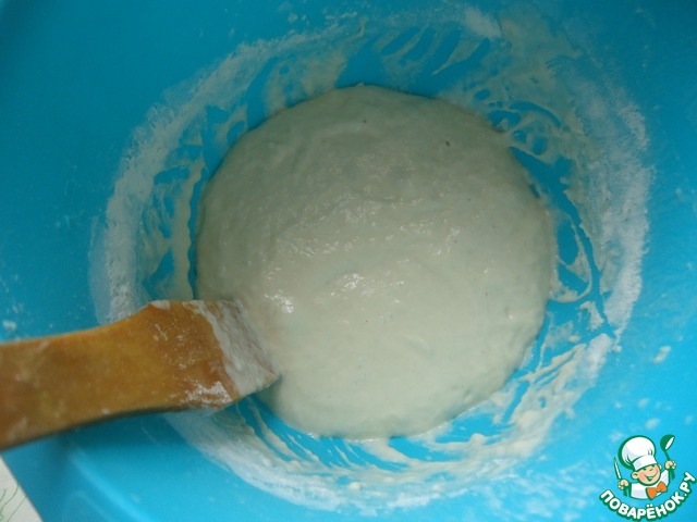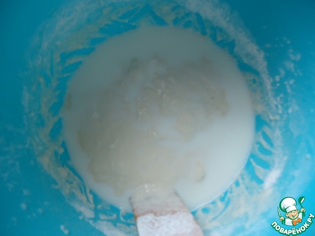 Затем добавить теплое молоко и тщательно перемешать. Накрыть миску полотенцем и поставить в теплое место подходить.