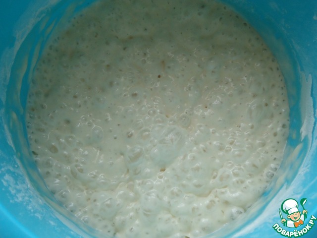 Займемся блинами. В теплой воде развести дрожжи, добавить соль, сахар, постепенно ввести просеянную муку и замесить тесто.