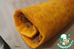 Я очень люблю тыкву и люблю ее готовить! Предлагаю Вам попробовать рулет из тыквенного теста с мясной начинкой. Его можно есть как закуску или второе блюдо без гарнира. Оранжево, ярко, вкусно! Если подадите на праздничный стол, приятное удивление гостей Вам гарантируется!)
