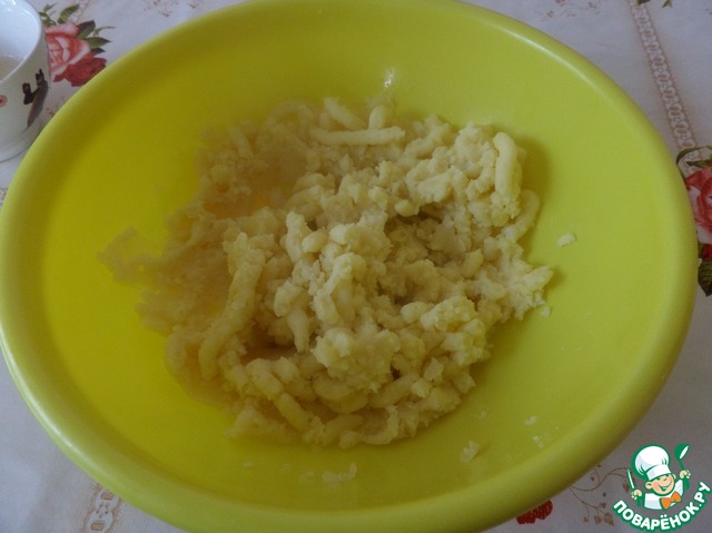 Отварной картофель выкладываем в чашку. Добавляем сливочное масло. Я использую сливочное масло ТМ "Милье".