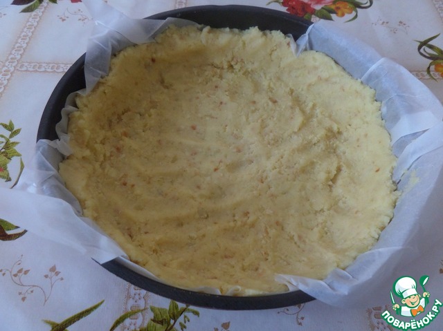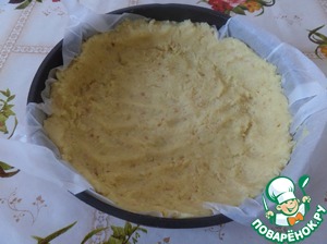 В глубокую форму выкладываем картофельное тесто, формируя бортики.