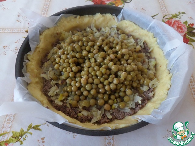 Вкусный и сытный домашний пирог с начинкой из говяжьей печени, зеленого горошка и обжаренного лука. Основой пирога служит картофельное тесто. Вкусно?! Очень!!! Особенно понравится пирог любителям печени! Пробуйте!