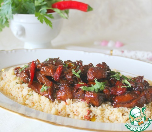 Замечательное мясо получилось - кисло сладкое, ароматное, насыщенное, с пикантным вкусом, на гарнир подала нежный кус-кус - отличный дуэт получился. Муж сказал срочно занести в заветную тетрадь! А это высшая похвала)))И готовится быстро! Попробуем?