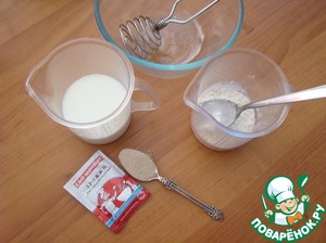 Молоко немного греем и растворяем в нём дрожжи, добавляем сахар 1 ст л и 30 г муки.