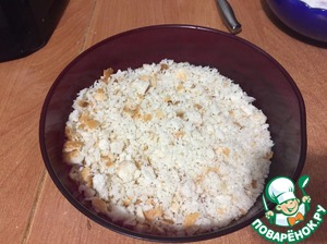 Булку или белый хлеб наломать на небольшие куски и перемолоть в крошку в комбайне.