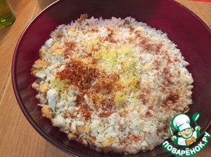 В панировку добавить немного цедры лимона, чили перец, посолить и тщательно перемешать.