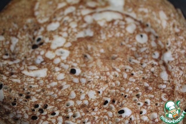 Вы можете выкладывать блины и начинку так, как хотите, но верх и низ нужно обязательно сделать из двух -трех блинов без начинки. -