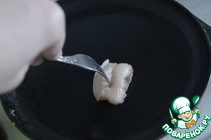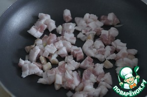 На сковороду выложить измельченную прослойку и дать вытопиться салу.
