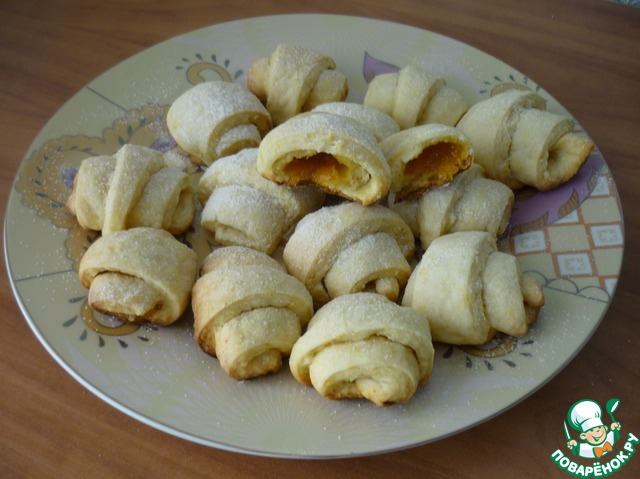 Рецепт "Творожные рогалики с абрикосовым джемом":