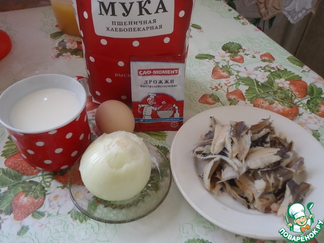Ингредиенты для «Блины дрожжевые с рыбно-луковым припеком»: