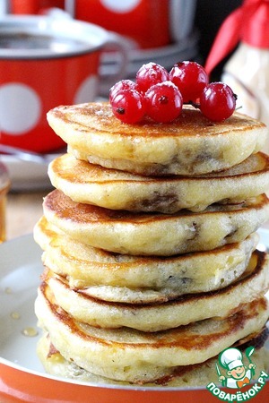 Горячие оладьи подаем с кленовым сиропом, медом или карамельным топпингом. Приятного аппетита!