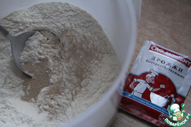 • Равномерно смешать все сухие компоненты рецепта: просеянную муку, сахар, соль и дрожжи.