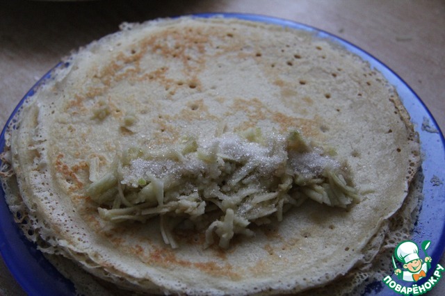 Рецепт «Дрожжевые блины с яблочно-грушевым соусом»: