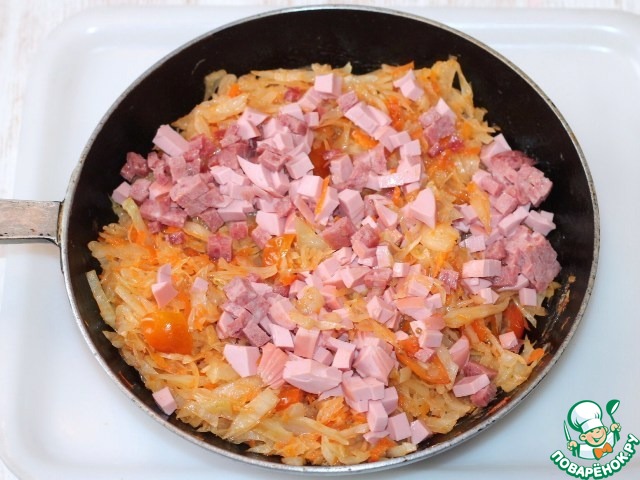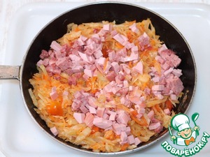 6. Добавить порезанную кубиками ветчину, посолить, перемешать и тушить до готовности.