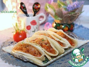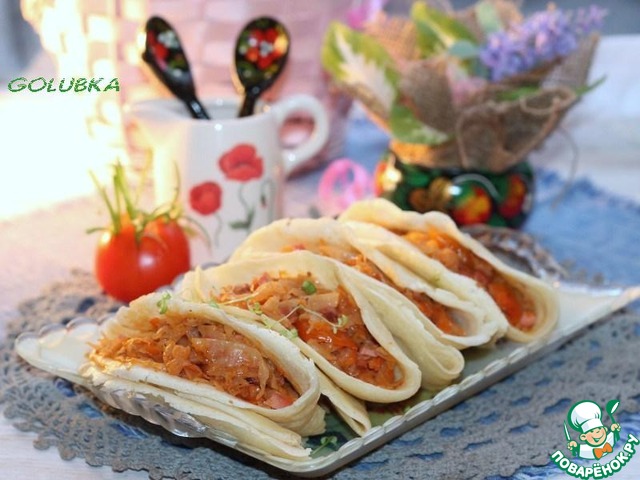 Кстати мне больше всего с капустой блины понравились. Капустная начинка немного пропитывает блинчики.