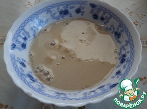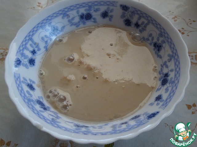 Добавляем теплую воду. Перемешиваем. Оставляем на 3-5 минут.