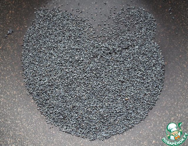 3 ст. л. мака поджарить на сухой сковороде на среднем огне в течение 1 минуты (появится звук "хлопания").