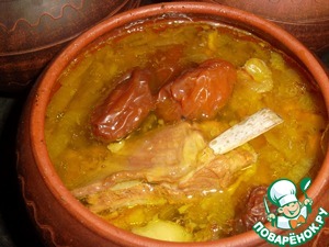 Пити – азербайджанский суп. Очень прост в приготовлении, но весьма долог. Данный рецепт немного адаптирован под вкусы моего семейства и под регион проживания. На абсолютную аутентичность блюда совсем не претендую. Еще хочу сказать: варю его довольно таки «густым», поэтому для нас это даже не суп, а полноценный обед или ужин в одном горшочке – такое себе «2 в 1», и первое и второе сразу…