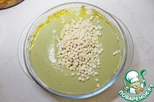 Теперь можно добавить растопленное (не горячее!)сливочное масло и белый шоколад.