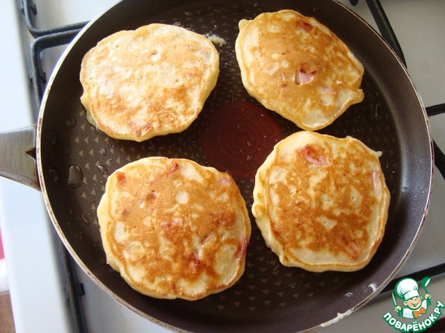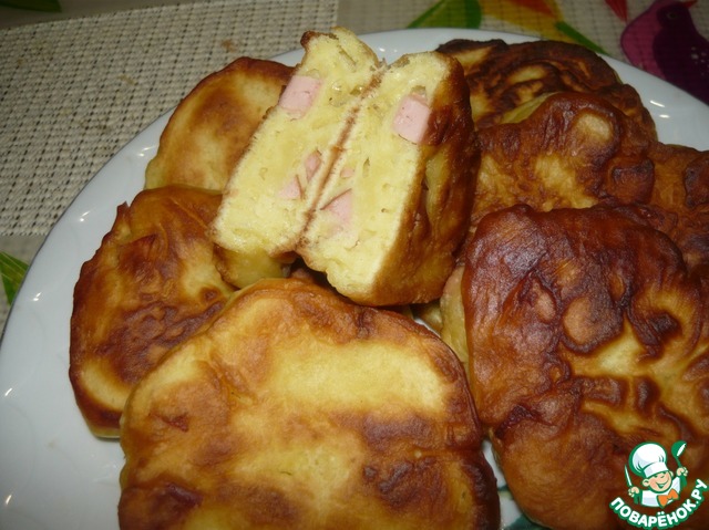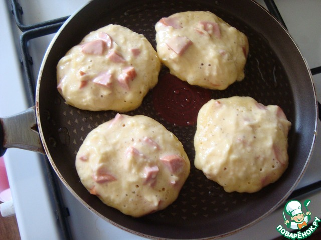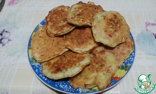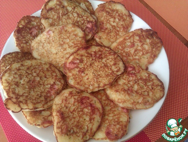 Рецепт «Картофельно-луковые оладьи с сосисками»: