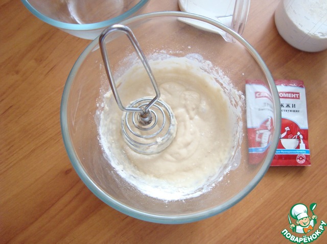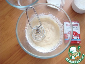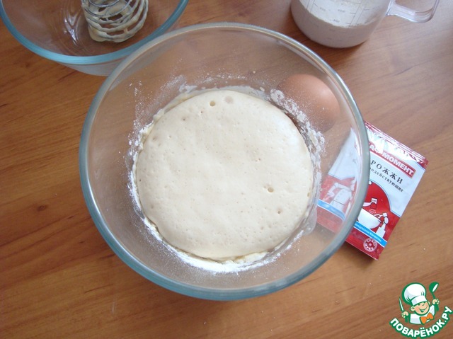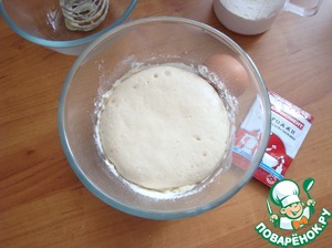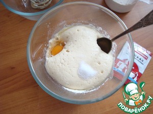 Добавляем 30 г муки, соединяем и отправляем в тёплое место. я грею немного духовку и ставлю в неё.