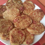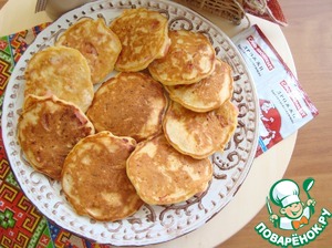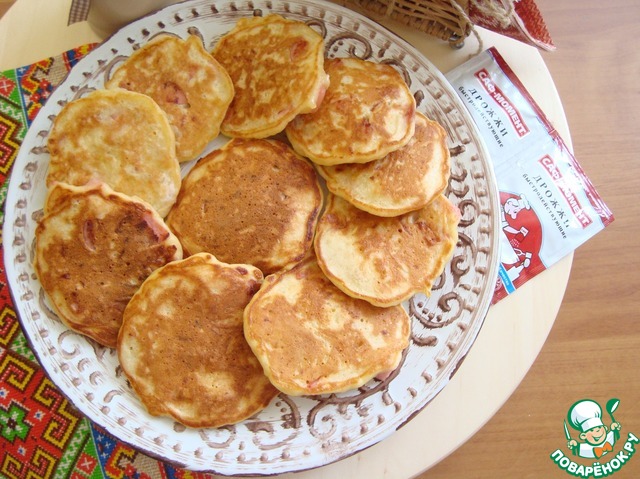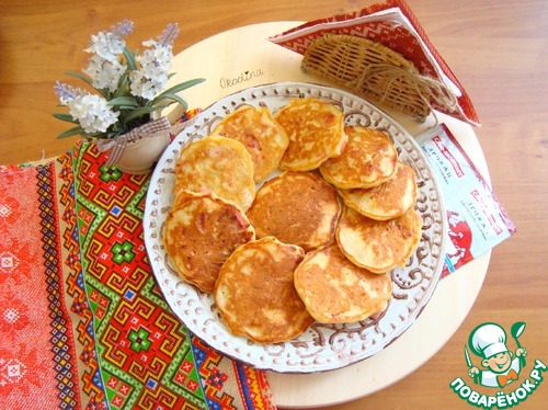 Из этого теста получилось 10 шт оладий и я их жарила в 3 раза, каждый раз подмазывая сковороду.