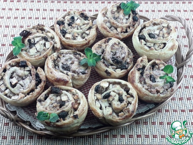 Вынимаем выпечку из духовки, немного охлаждаем и вынимаем мини-штрудели из формочек. -