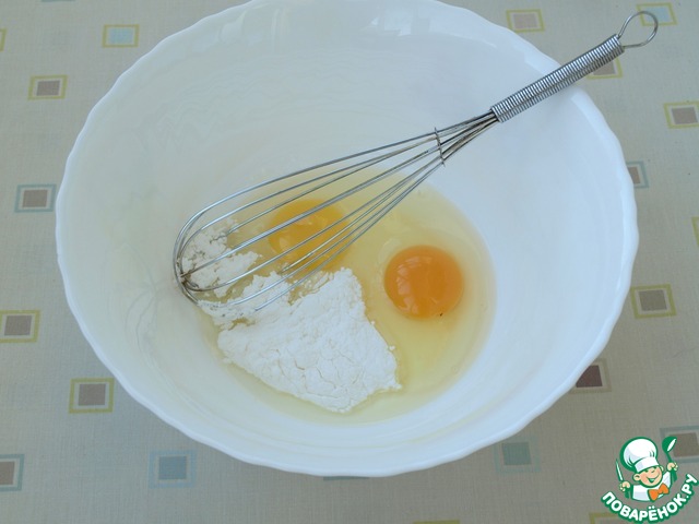 Разбить в миску яйца, добавить сахарную пудру и соль. Взбить венчиком.