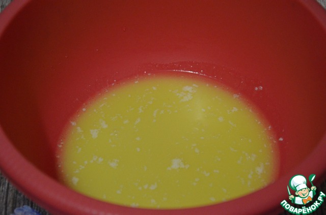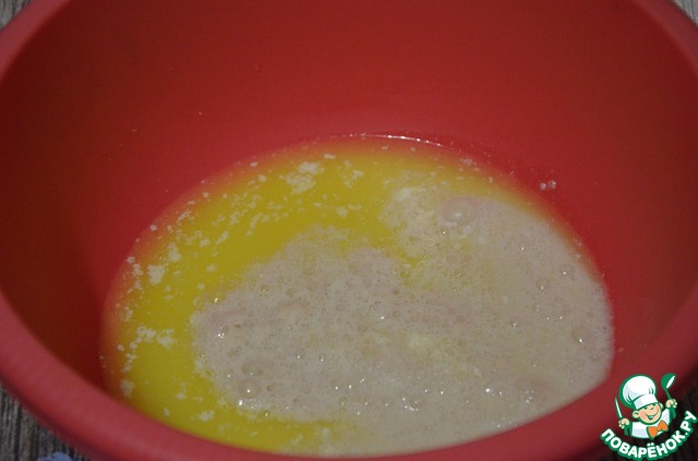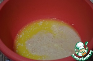 Далее в большой чаше смешиваем масляную смесь и дрожжевую.
